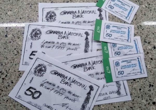 Money: One thing I did differently was the money. I’d seen another group simply blew up the money graphic rather than use the cards as provided. So I thought I’d try the same. I just took the graphic and printed that directly, using the Windows Print function (four to a page of A4).